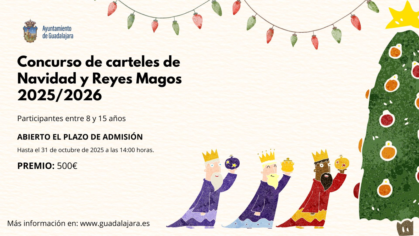 Ya está abierta la nueva convocatoria para el cartel oficial de las próximas fiestas navideñas y de Reyes Magos 2025/2026, que va destinado a jóvenes de entre 8 y 15 años. El Ayuntamiento de Guadalajara busca una obra original que represente el espíritu festivo de las celebraciones navideñas en la ciudad.