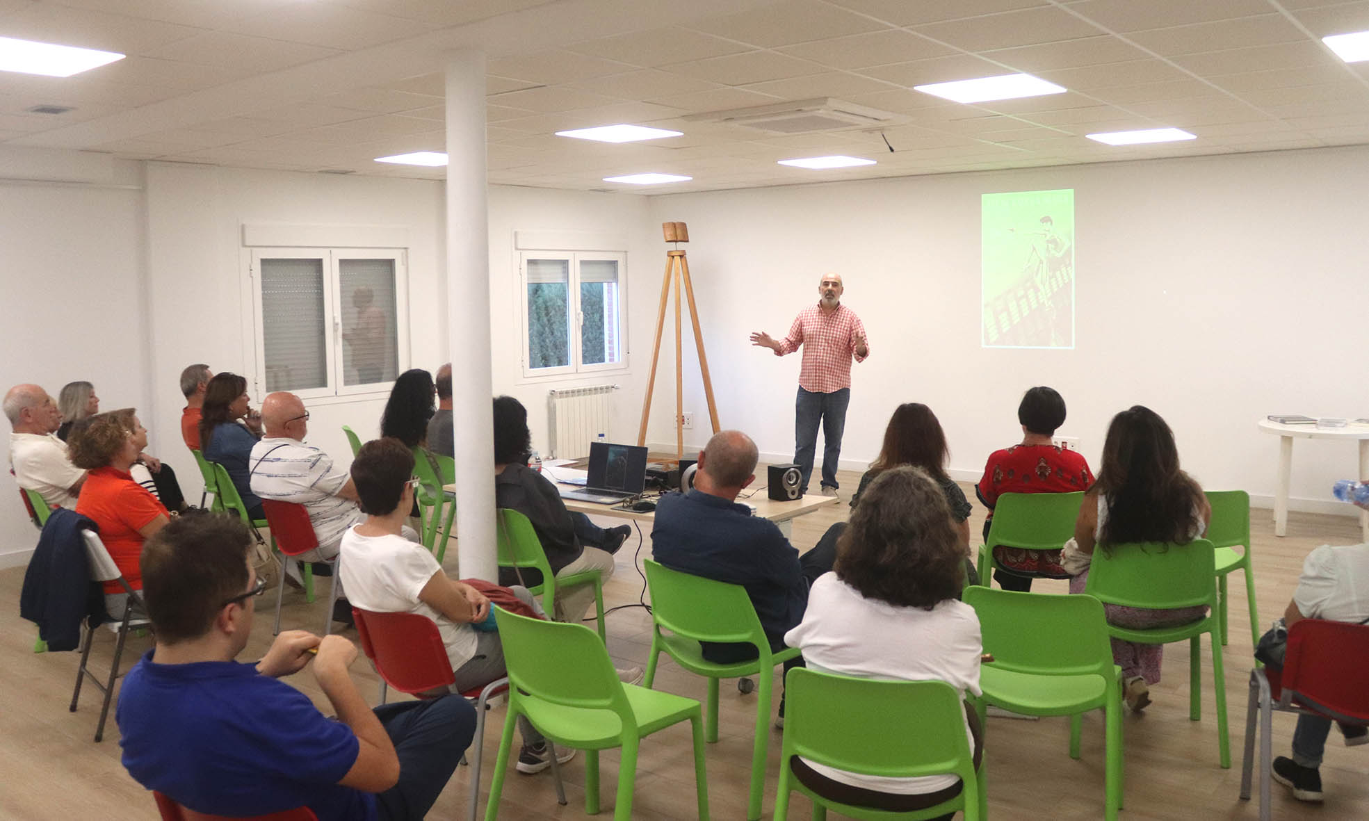 La cita de apertura comenzó con el concejal de Cultura y primer teniente de alcalde, Luis Blanco, dando la bienvenida al público asistente, y presentando a los miembros de «Bichobola». Luis Blanco recordó que son ya varios años los que este colectivo cultural lleva ofreciendo talleres muy interesantes en Cabanillas, y citó algunos ejemplos, como el taller «Enemigos íntimos», sobre Cine y Literatura, impartido en 2023; el taller «José Antonio Ochaíta: La Alcarria entre mis manos», sobre el recordado poeta jadraqueño, que se ofreció en 2024; «Antología cinematográfica… y también dos huevos duros», con una historia general del Cine, también del pasado año 2024; o «¡¿Qué he hecho yo para merecer esto?!», de 2019, que abordó la historia de la mujer en el Cine.