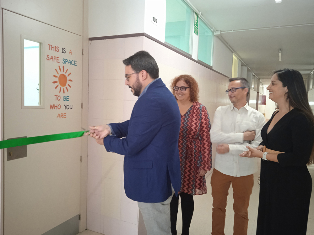 Este martes, el alcalde Miguel Óscar Aparicio, flanqueado por la concejala de Educación, Susana Santiago, ha recorrido las instalaciones del instituto y ha charlado con sus responsables en el corazón de esta iniciativa: un aula acogedora, señalada en la puerta como «espacio seguro», provista de muebles cómodos y recursos variados.